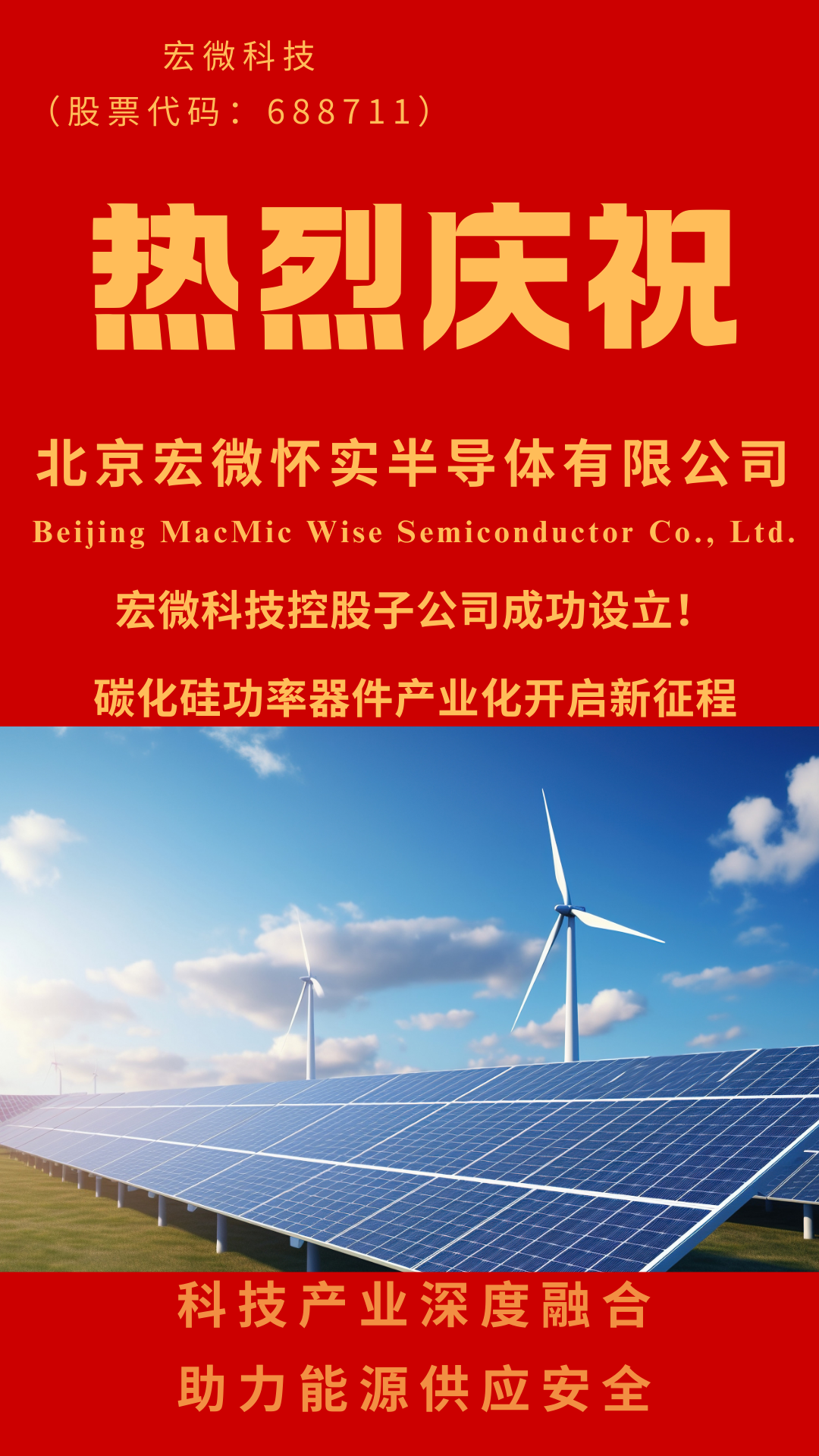 2026年3月3日,由宏微科技(证券代码:688711)携手怀柔实验室共同设立的合资公司——北京宏微怀实半导体有限公司正式宣告成立。这标志着双方在推动碳化硅功率器件产业化方面迈出了关键一步,更是宏微科技能源业务战略的重要里程碑。